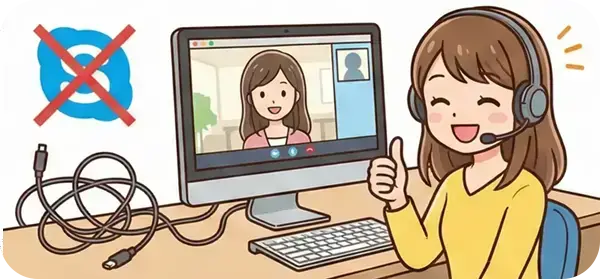 「オンライン英会話=Skypeの設定が大変そう」というイメージはありませんか?DMM英会話は**「Eikaiwa Live」**という独自のシステムを使います。 公式サイトにログインするだけで、ブラウザ上でそのままレッスンがスタート。画面上で教材やチャット、ホワイトボード機能も共有できるので、初心者でも直感的に操作できました。