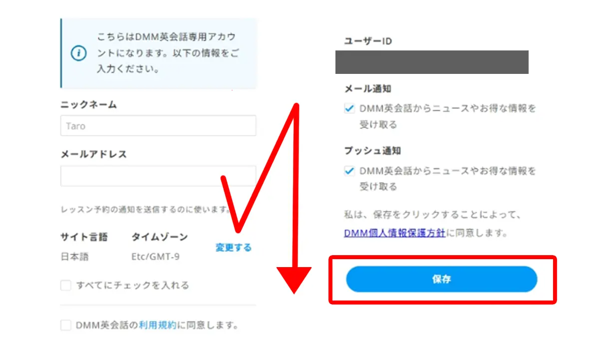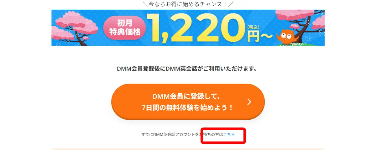 「DMM英会話」の母体である「DMM会員」にまずは登録し、その後、「DMM英会話」のアカウント設定に進む。