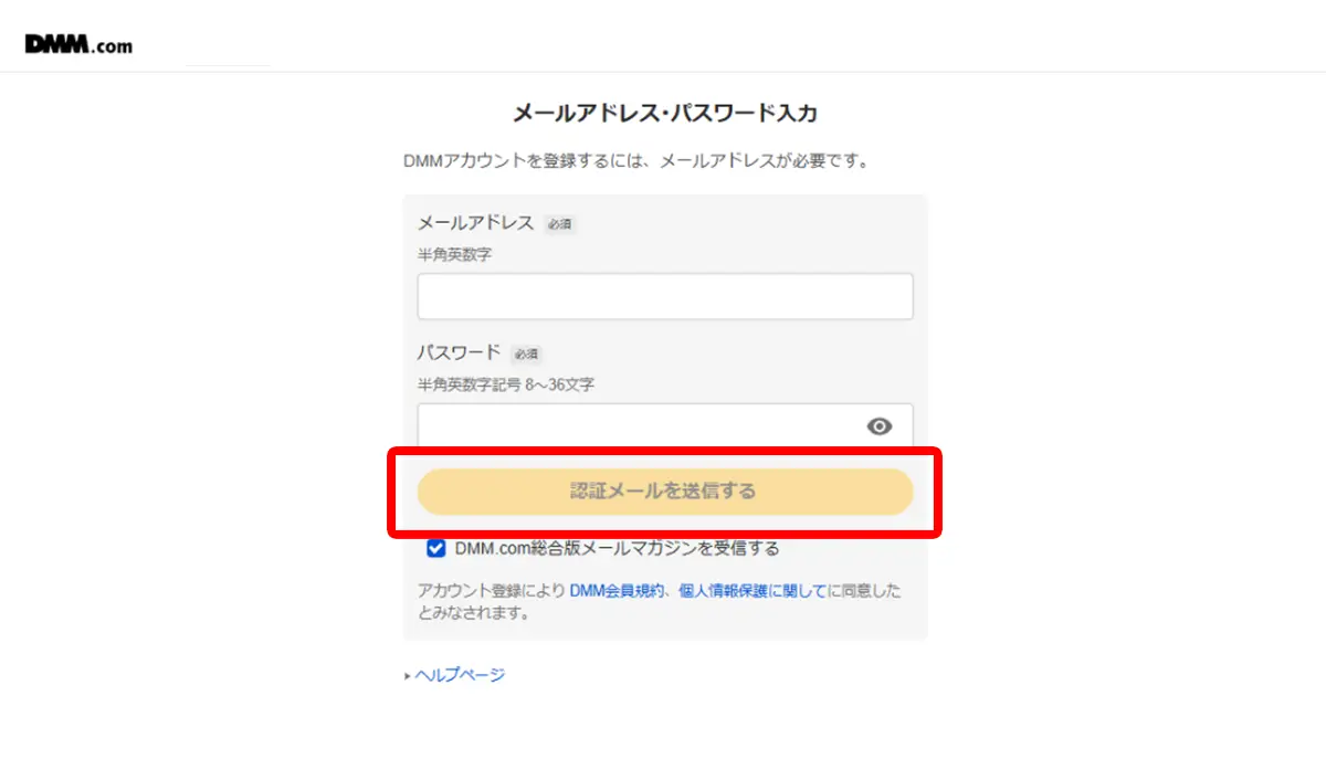 ※数分経ってもメールが届かない場合は、迷惑フォルダに入っていないか、入力したメールアドレスが間違っていないか確認。また、セキュリティの受信設定によってブロックされている場合もあるため、「@mail.dmm.com」のドメインが受信できるように設定を確認しておく。
