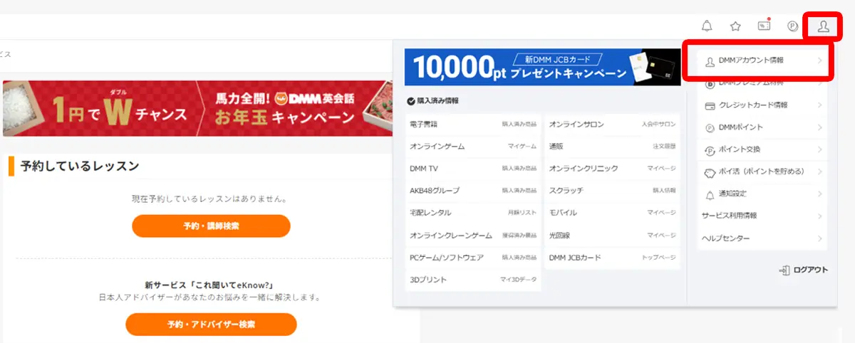 ※DMM英会話のアカウントアイコンと間違えやすいので注意!