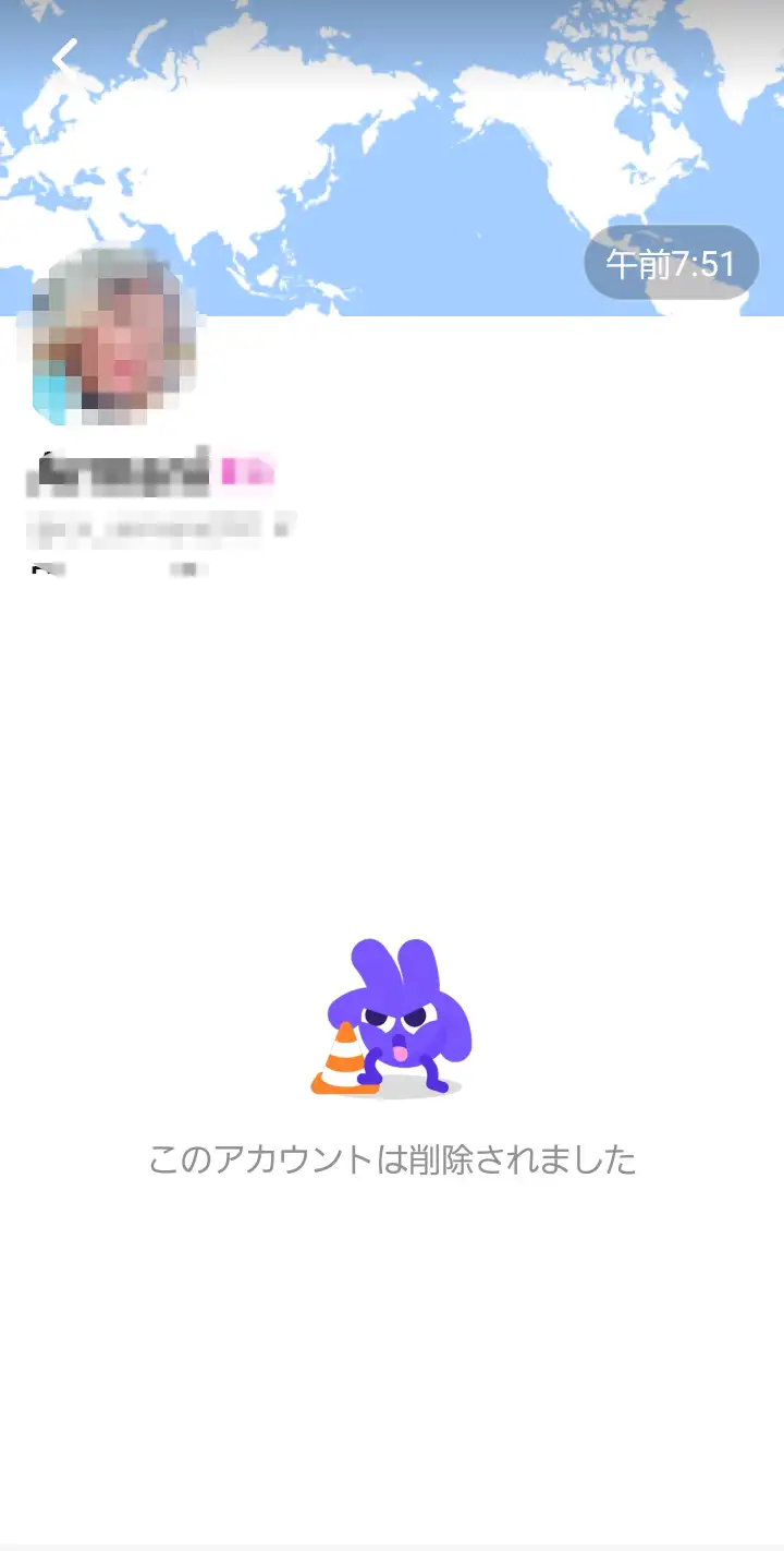 削除されたアカウントは、他ユーザーの画面上で「アカウント削除」と表示されます。