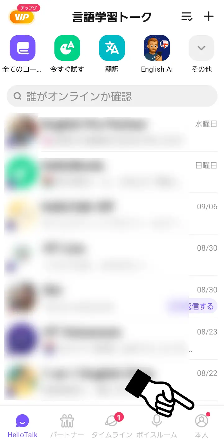 流石に怖くて試してませんが、調べてみたところHelloTalk(ハロートーク)では、