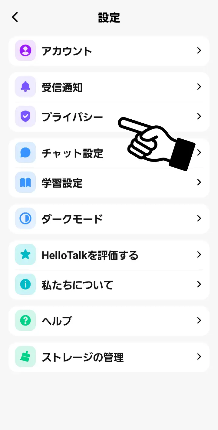 メニュー内から「プライバシー」を選択