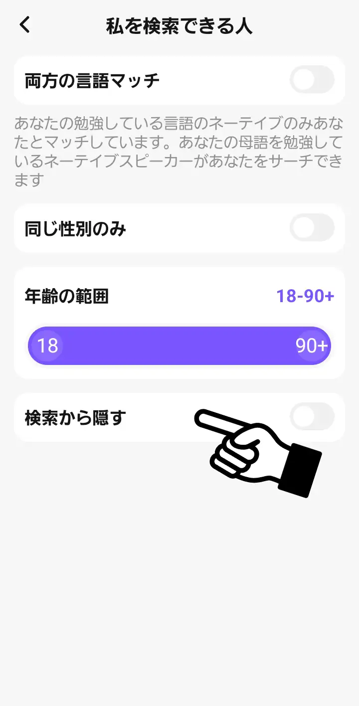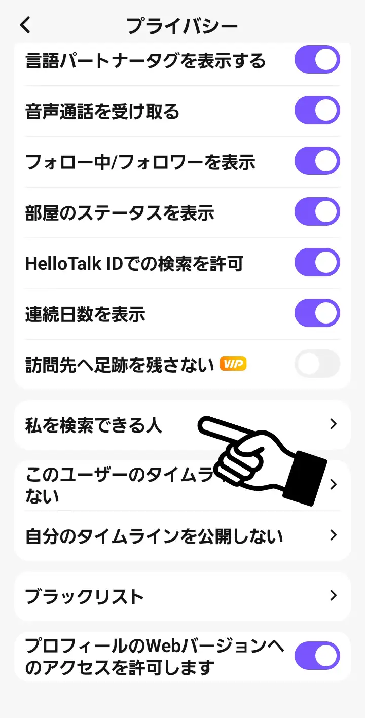少し下にスクロールして「私を検索できる人」を選択。