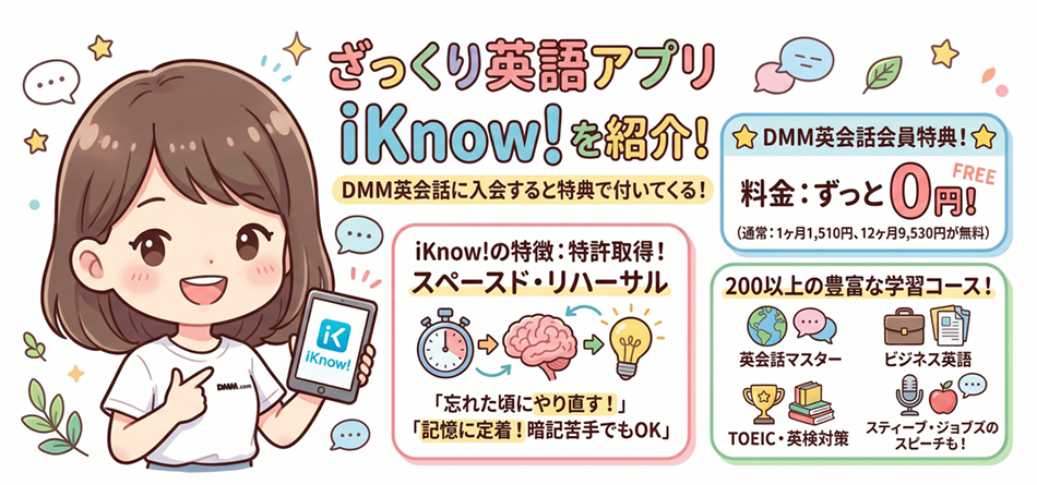DMM英会話に入会すると、特典として付いてくる「iKnow!」。