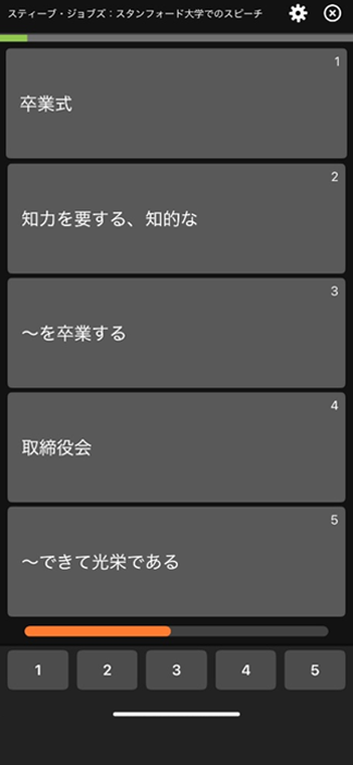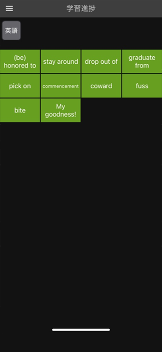 「学習進捗」にも単語・イディオムもどんどん増えていくので、モチベーションにも繋がる工夫が随所に見られます。