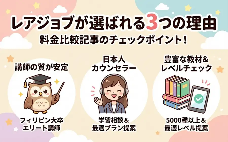 を考えれば、レアジョブのコスパは非常に高いです。