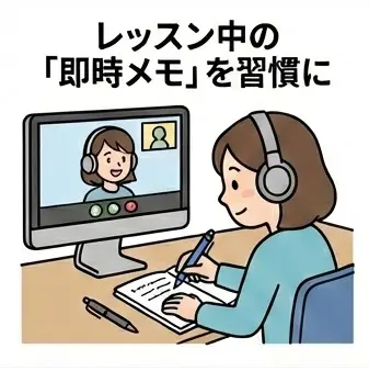 講師が教えてくれたフレーズや修正案は、その場ですぐに手元に控えましょう。耳で聞き、自分の手で書くプロセスを挟むことで、新しい知識の定着率が格段にアップします。