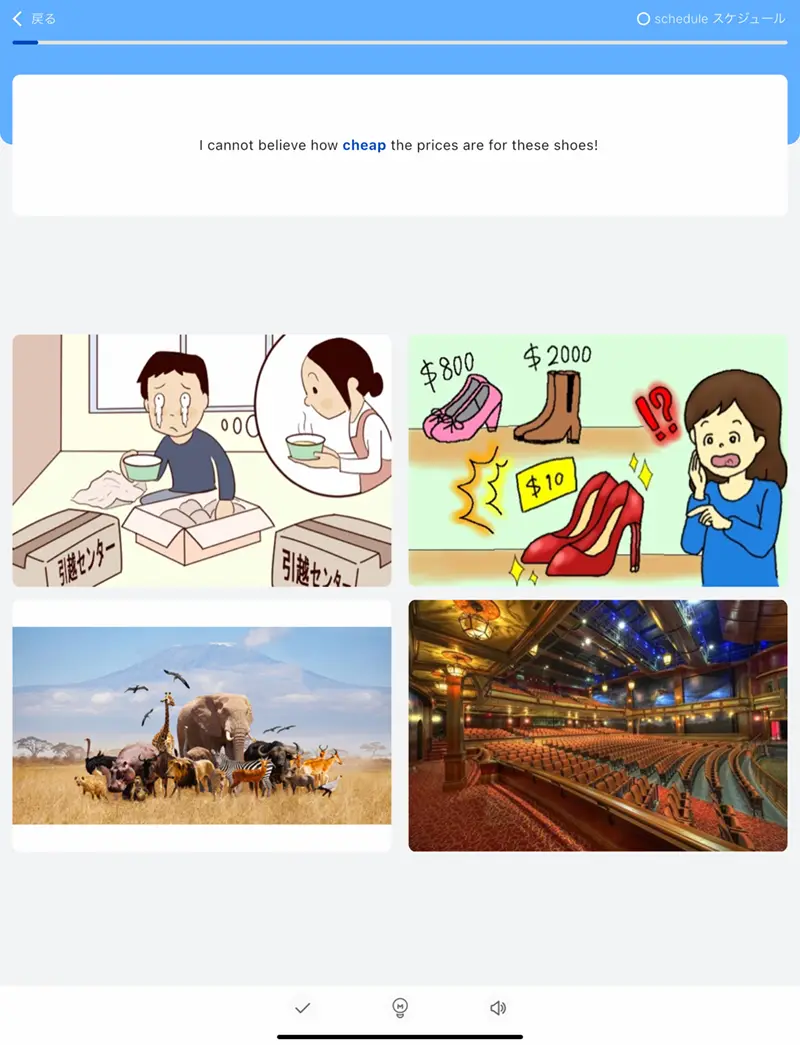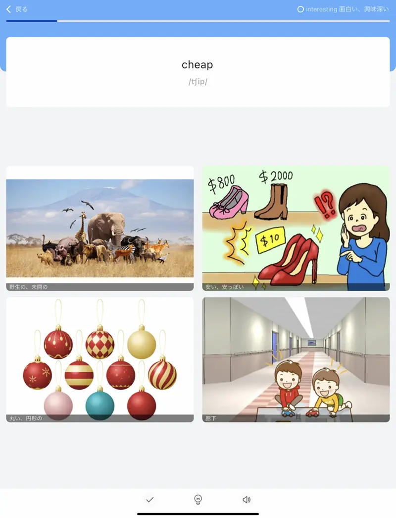 クイズ感覚で楽しみながら、単語の持つイメージを脳内で映像化する訓練をしていきましょう。間違えればまた同じ問題がでてきます。