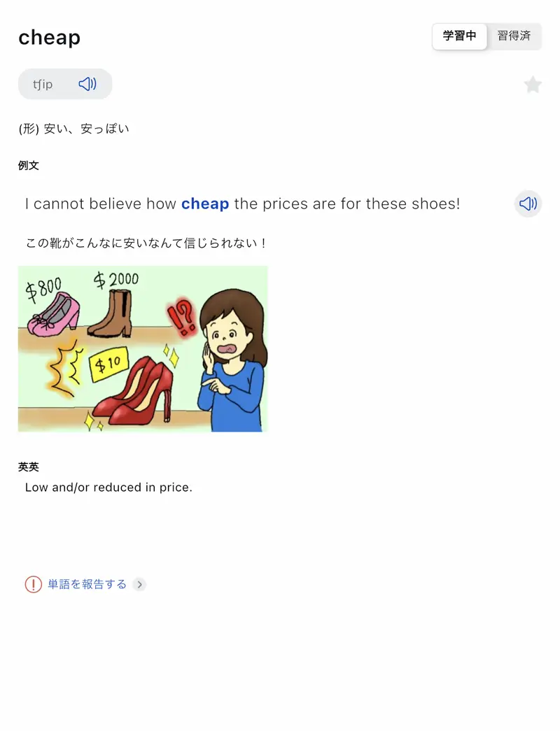 むしろ、物理的な単語帳にはない「AIによる復習管理」「ネイティブ音声・イラスト」がすべての単語に付いていることを考えると、コスパはかなり高いと感じました。