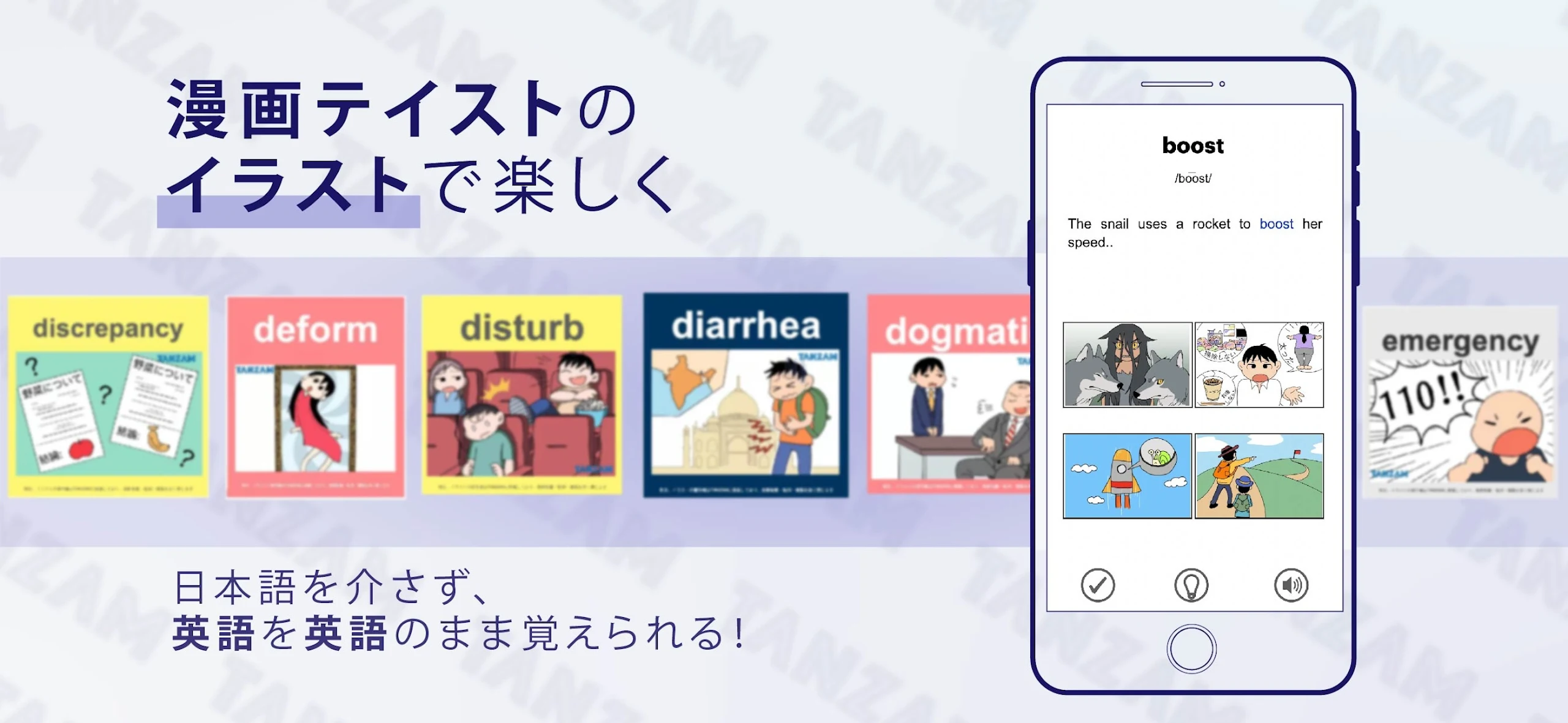 TANZAM(タンザム)は、全ての英単語をイラストや写真、そして実践的な例文で学べる新感覚の学習アプリです。